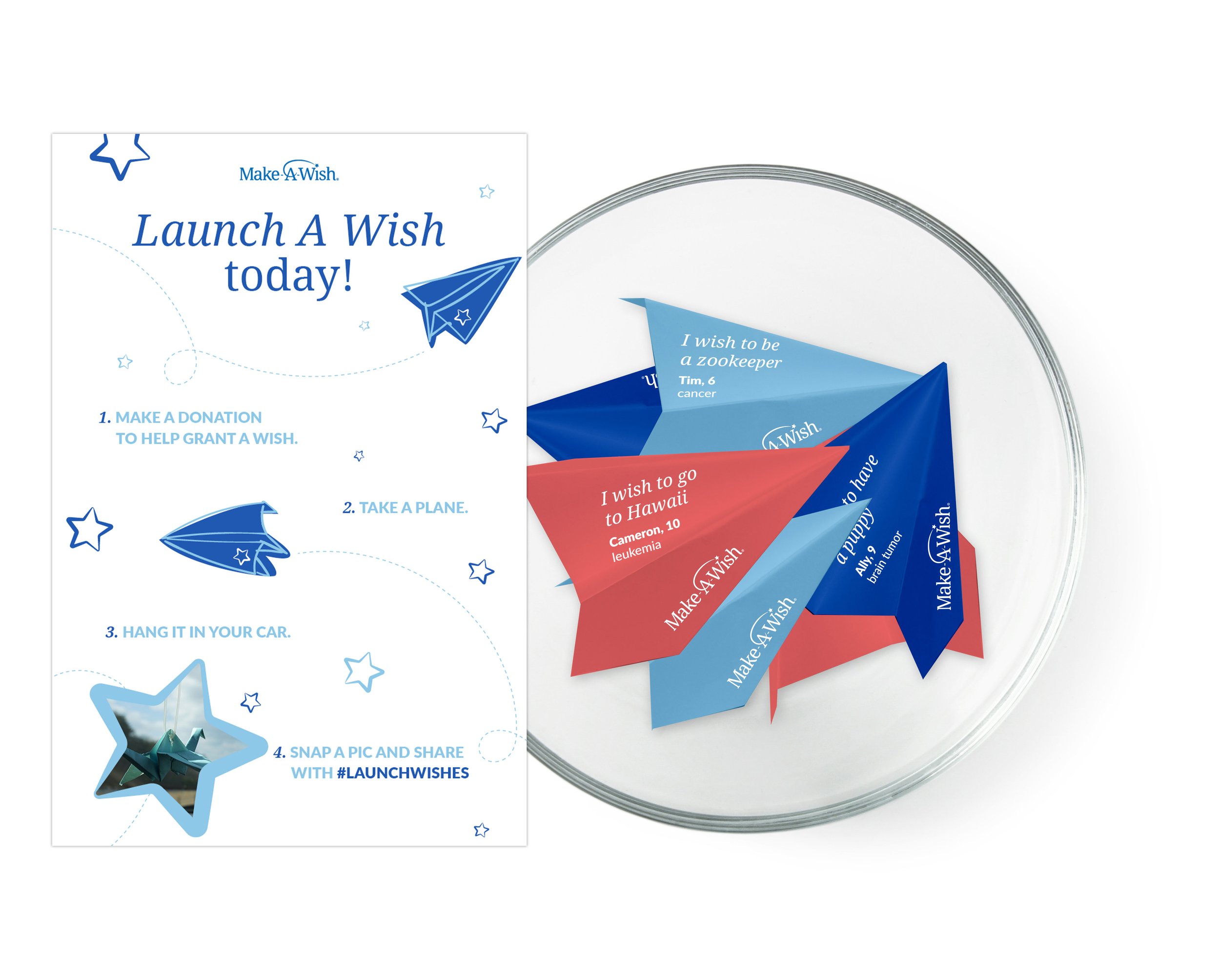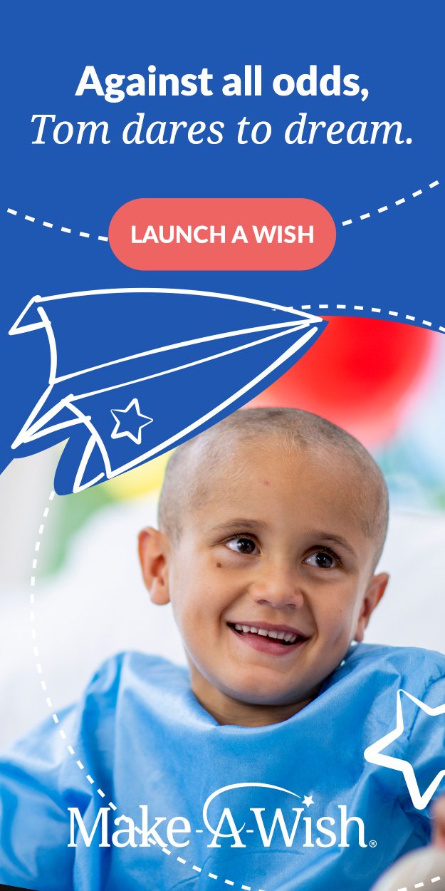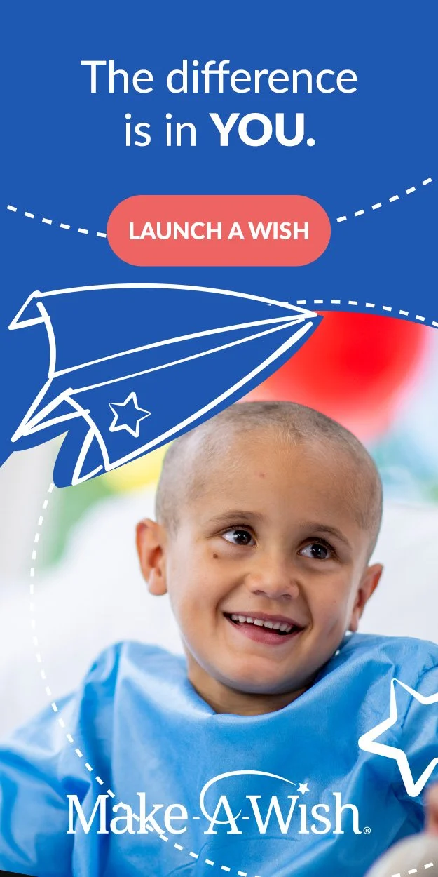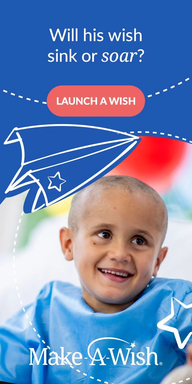Each year, Make-A-Wish® grants 15,000 of these wishes. The rest remain, waiting to be launched. When a child dares to dream, you can be the difference between their wish falling or soaring. By helping launch a wish, you can give a child a boundlessly uplifting experience that offers a lifetime of hope, strength and joy.